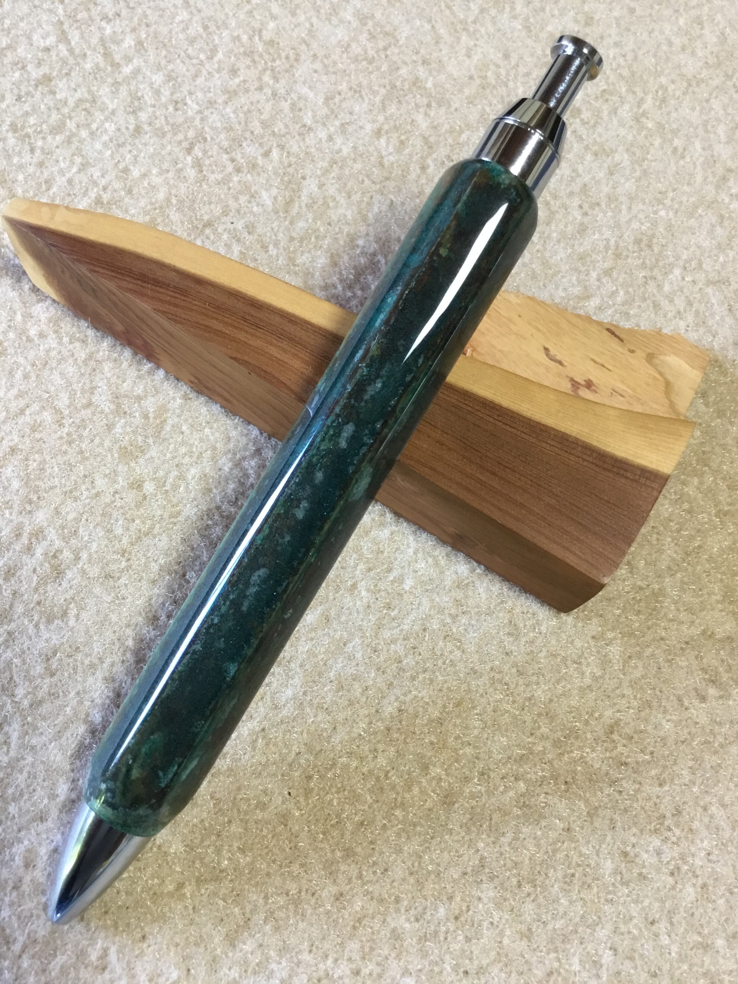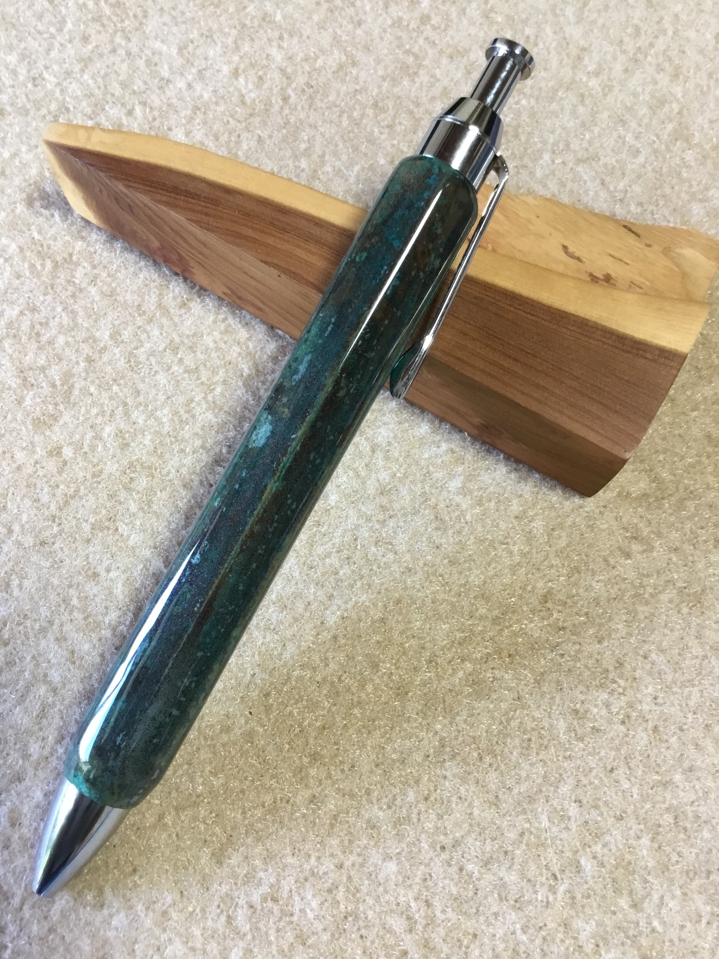 六角真鍮 緑青 2液性ウレタン仕上げ ボールペン