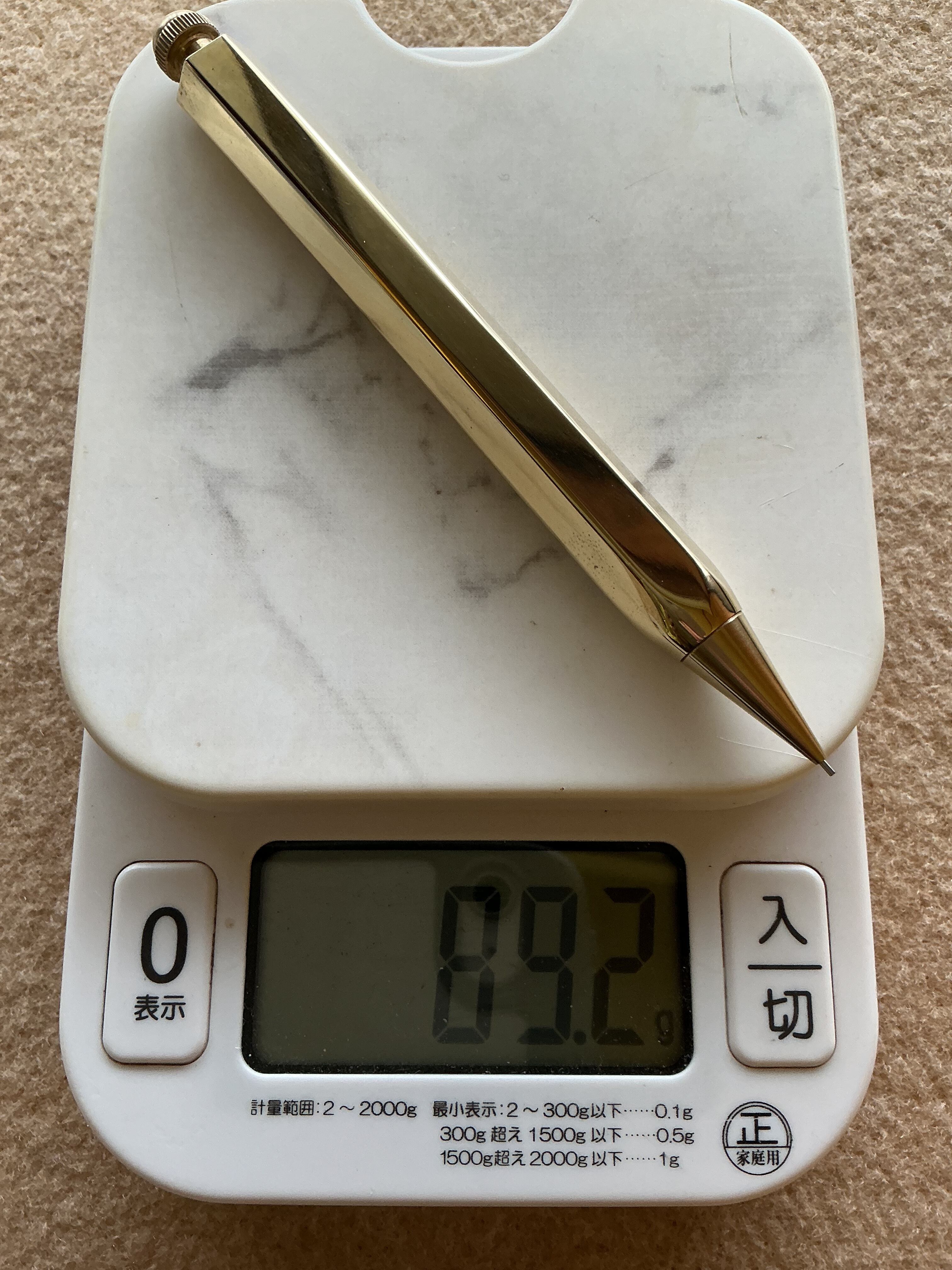 六角軸で対辺径12mm、重量は89.2gです。