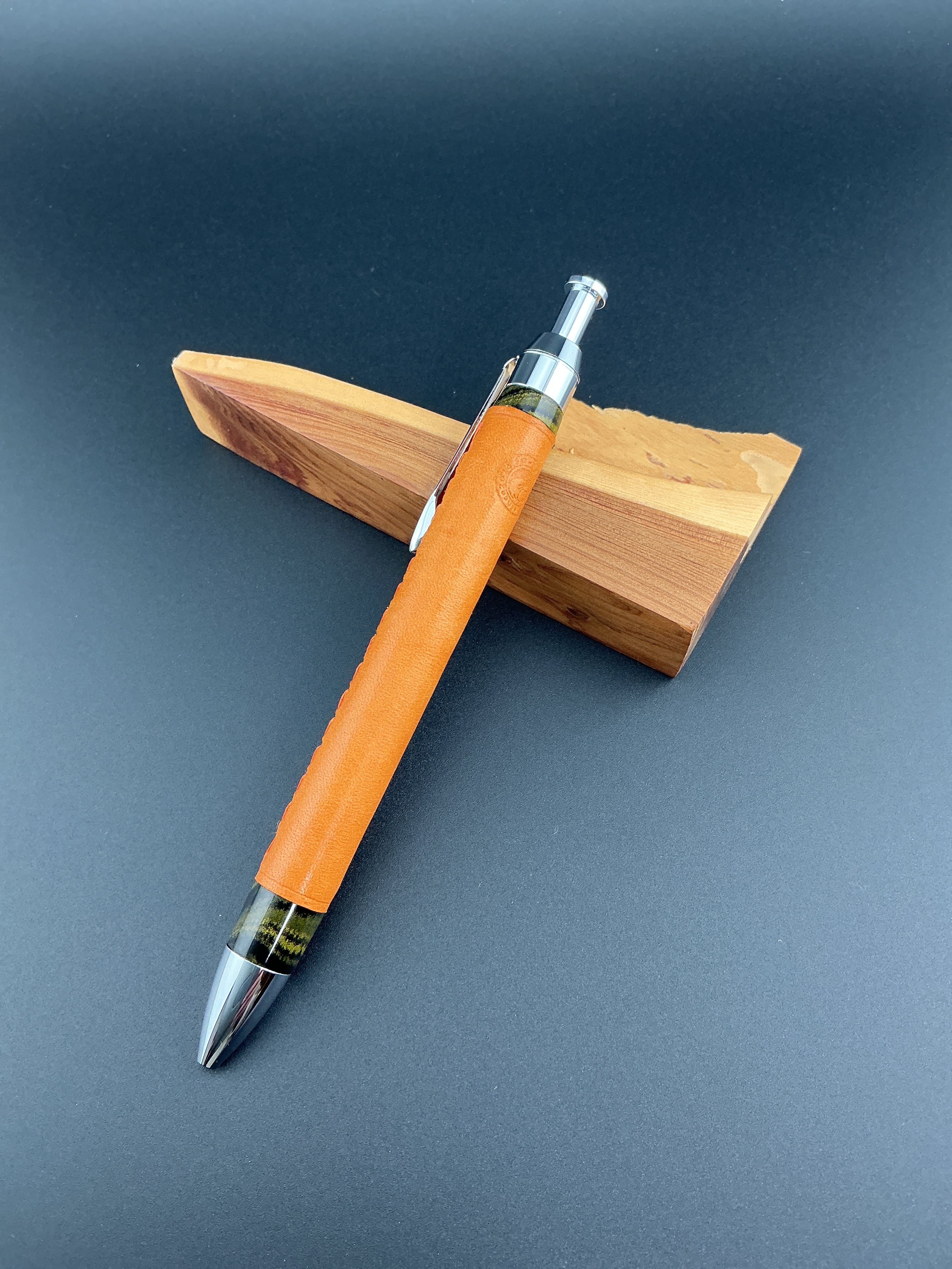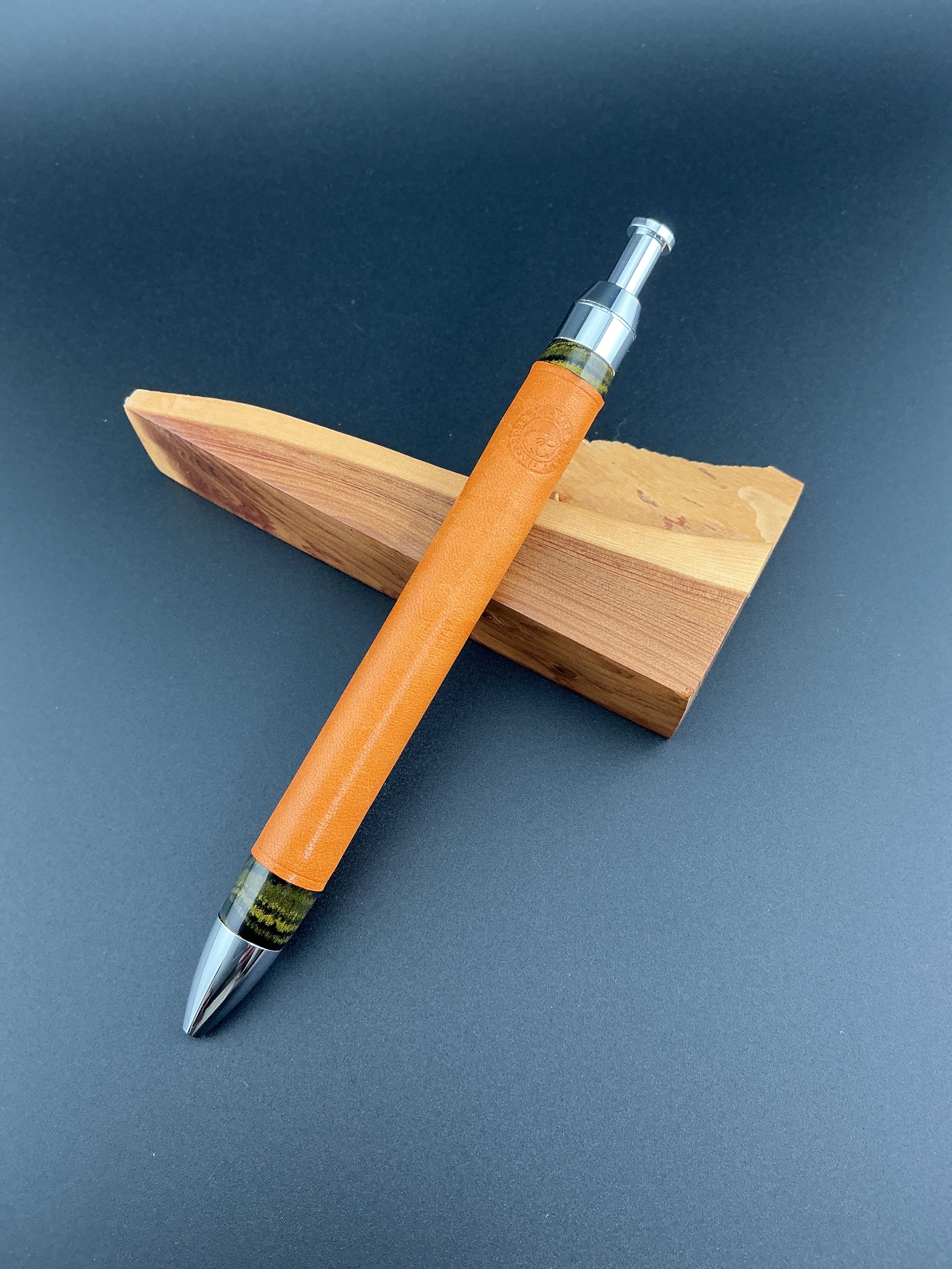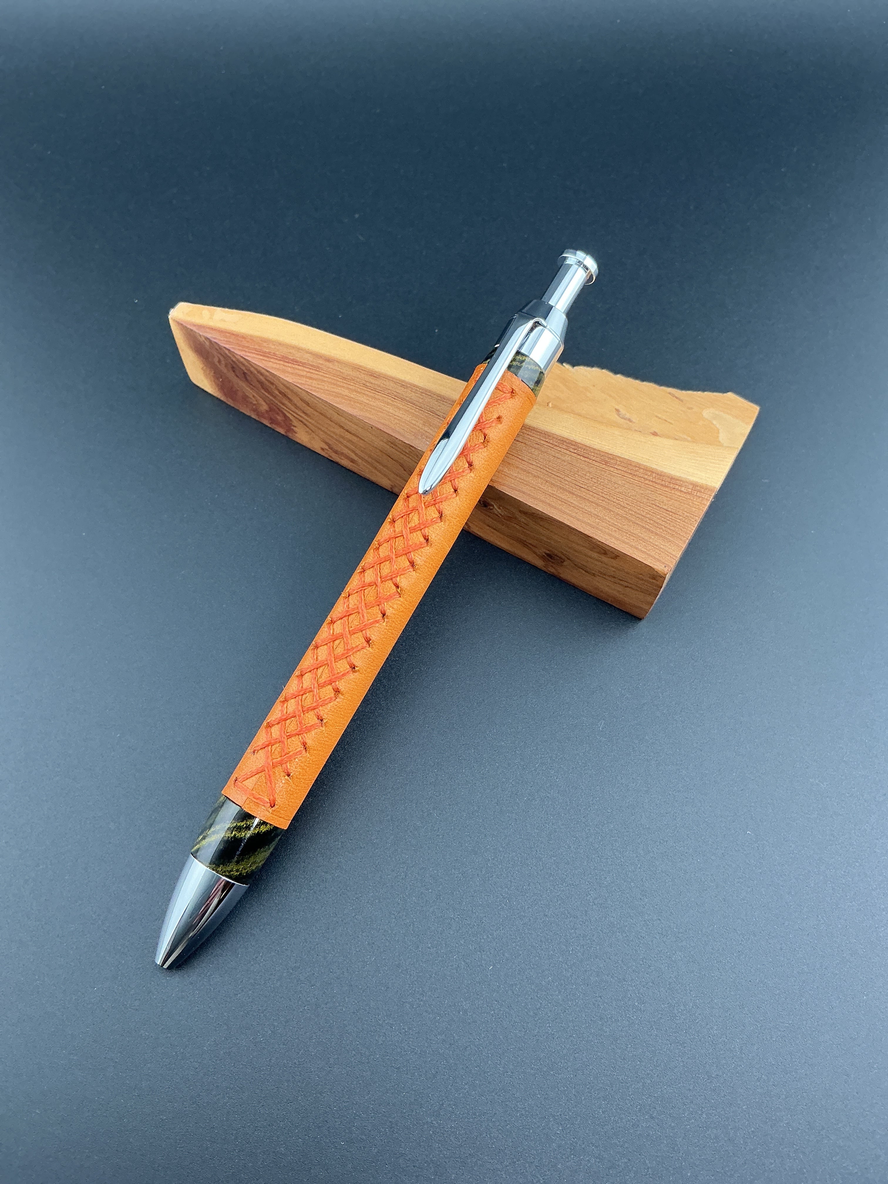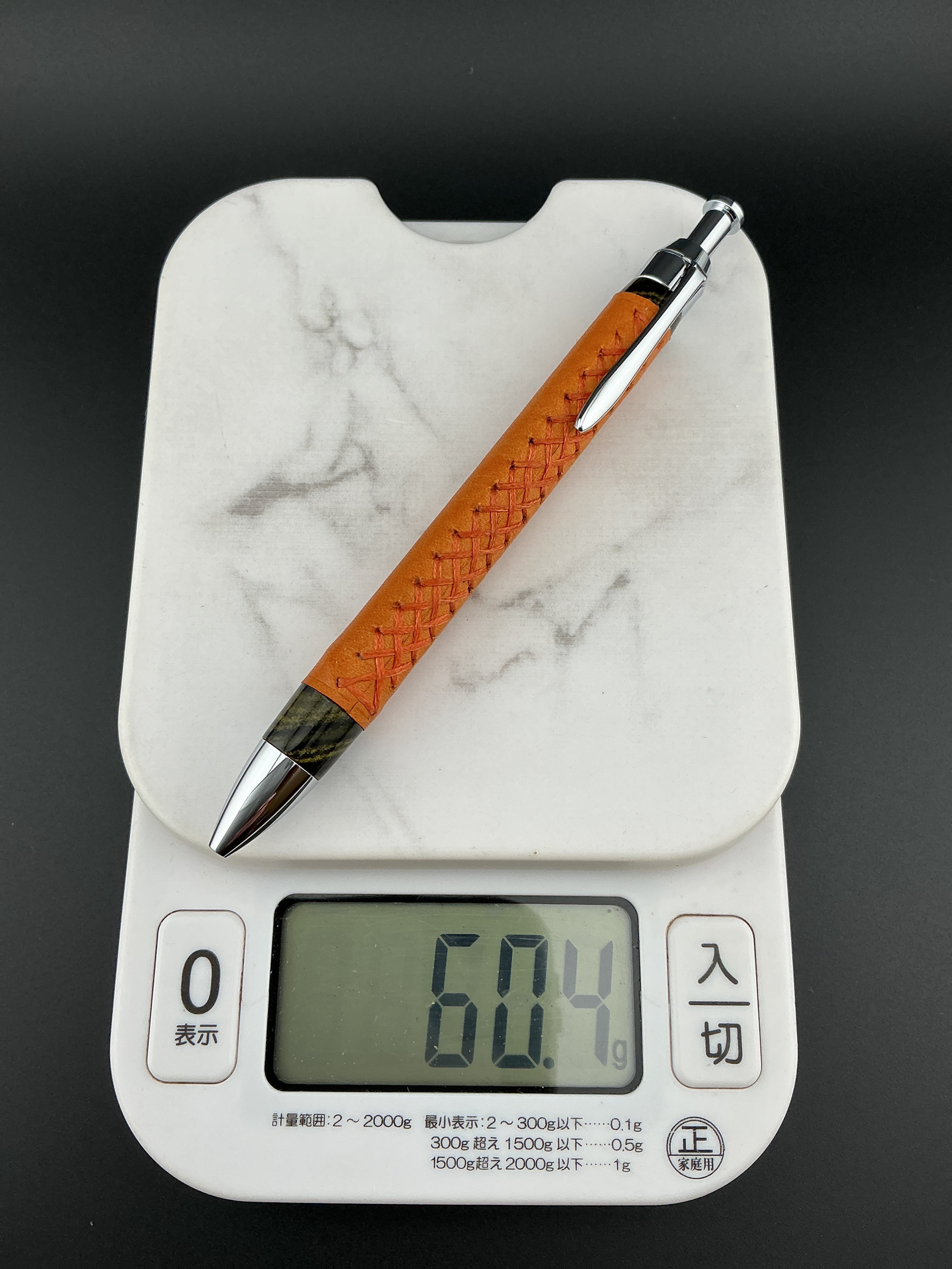 革軸ペン 60g 重量級 マヤオレンジ×オレンジステッチ×エボナイトイエローマーブル 三神シャープ1000 0.5mm