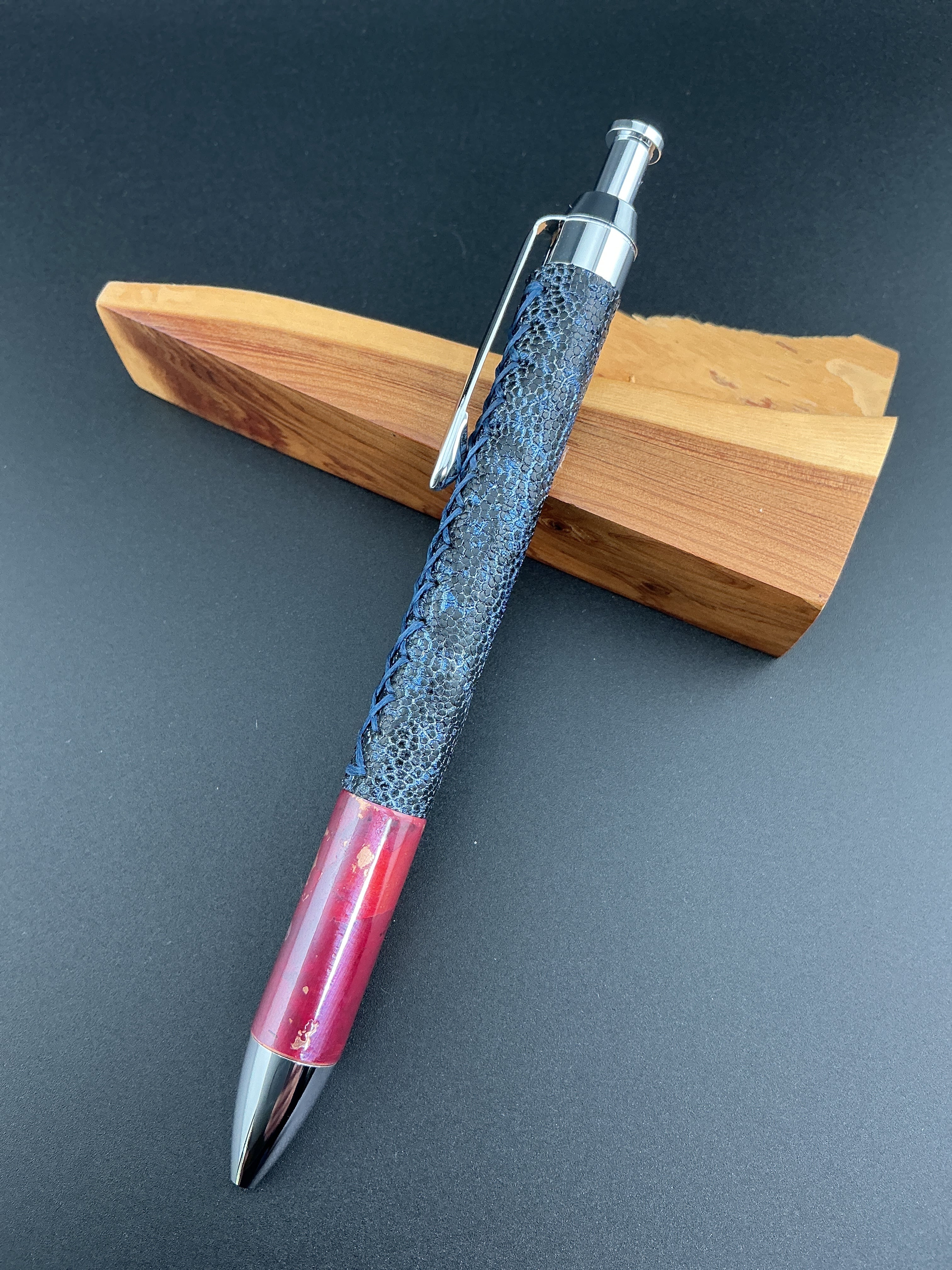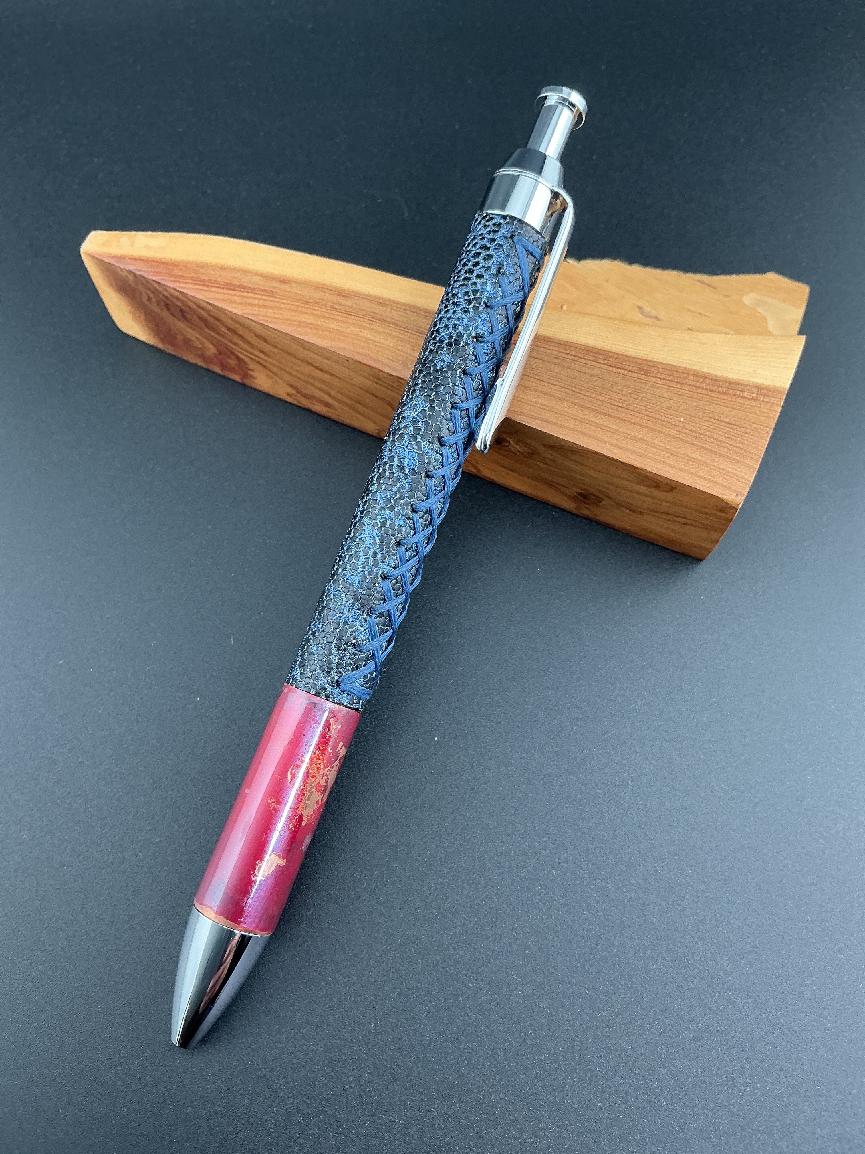 斑紋緋銅グリップ 象革