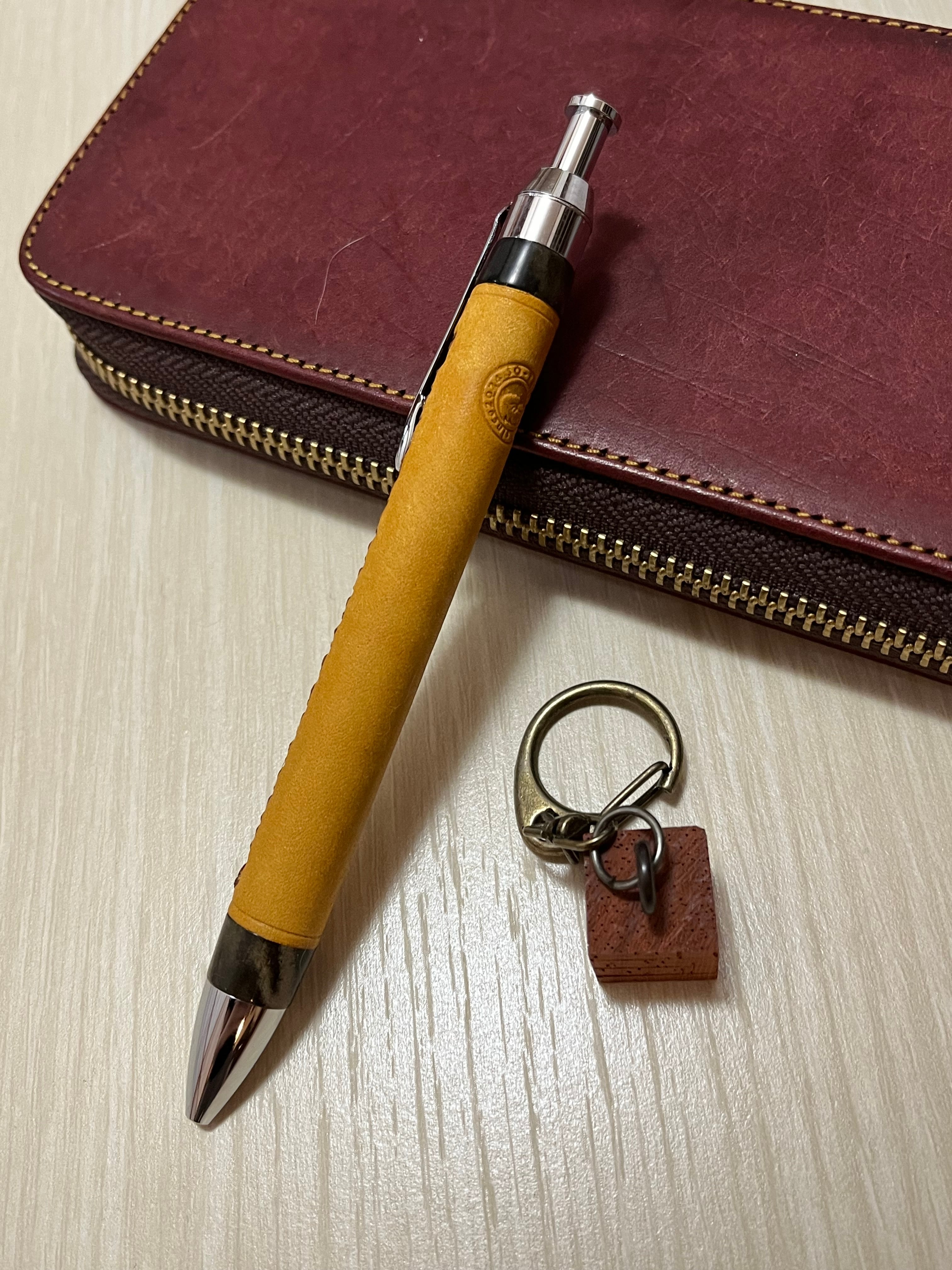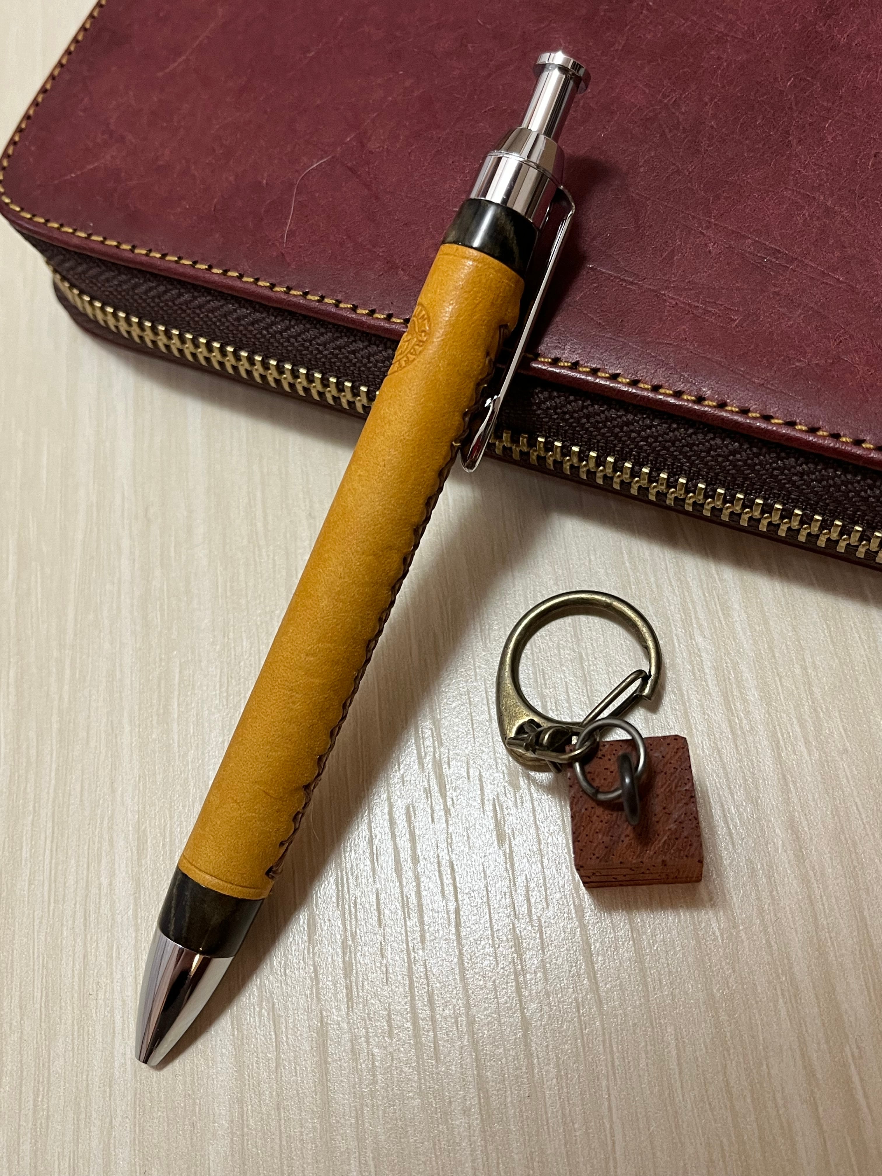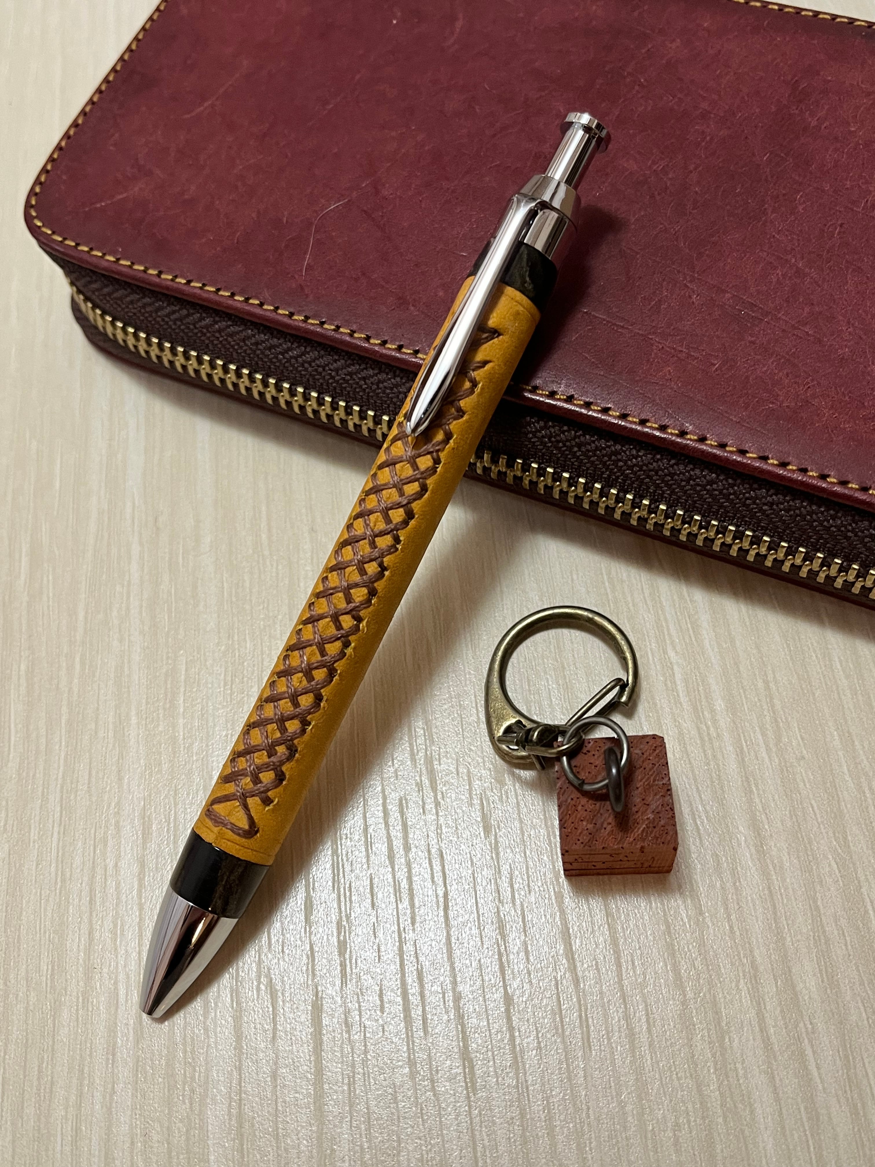 一般販売 蒼天革軸ペン イエロー×ブラウン×エボナイトベージュマーブル 三神シャープ1000