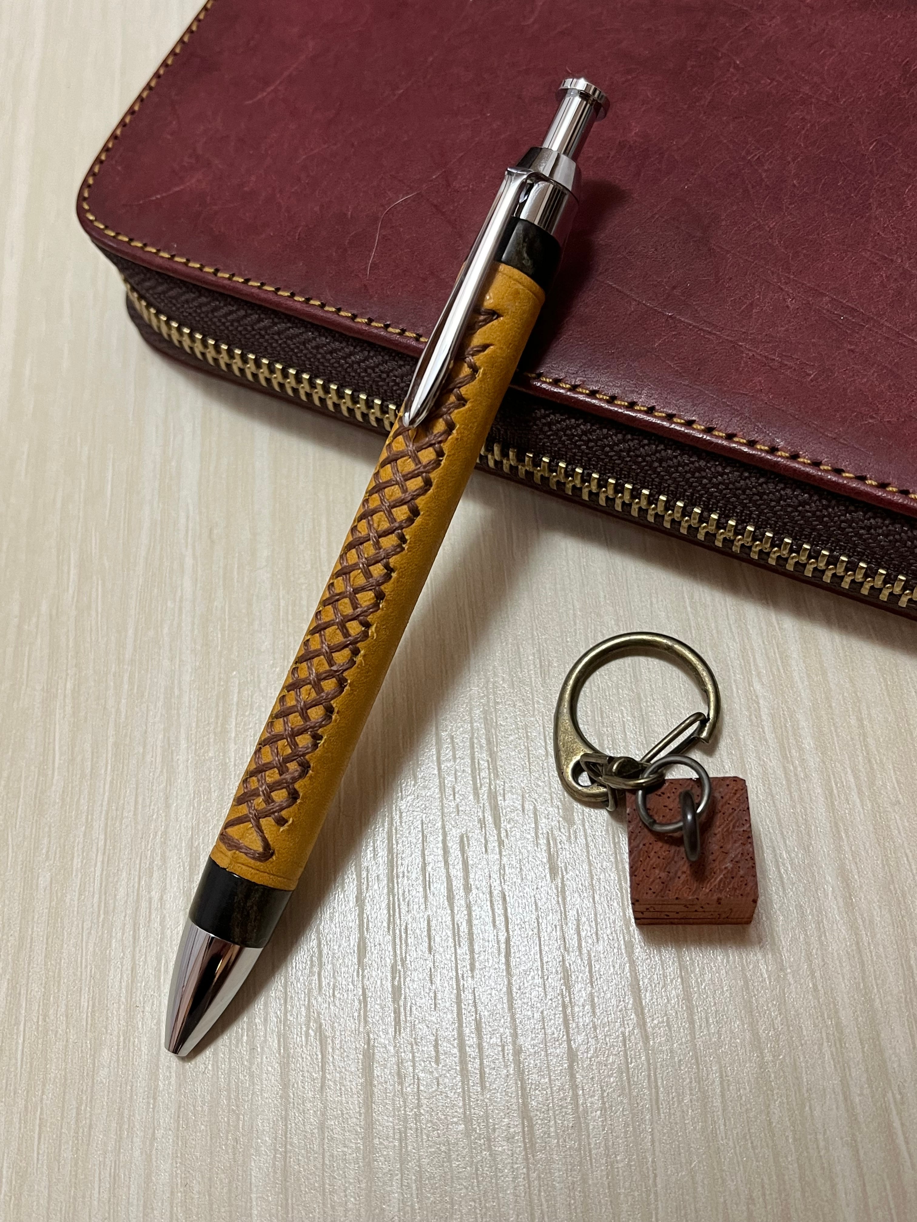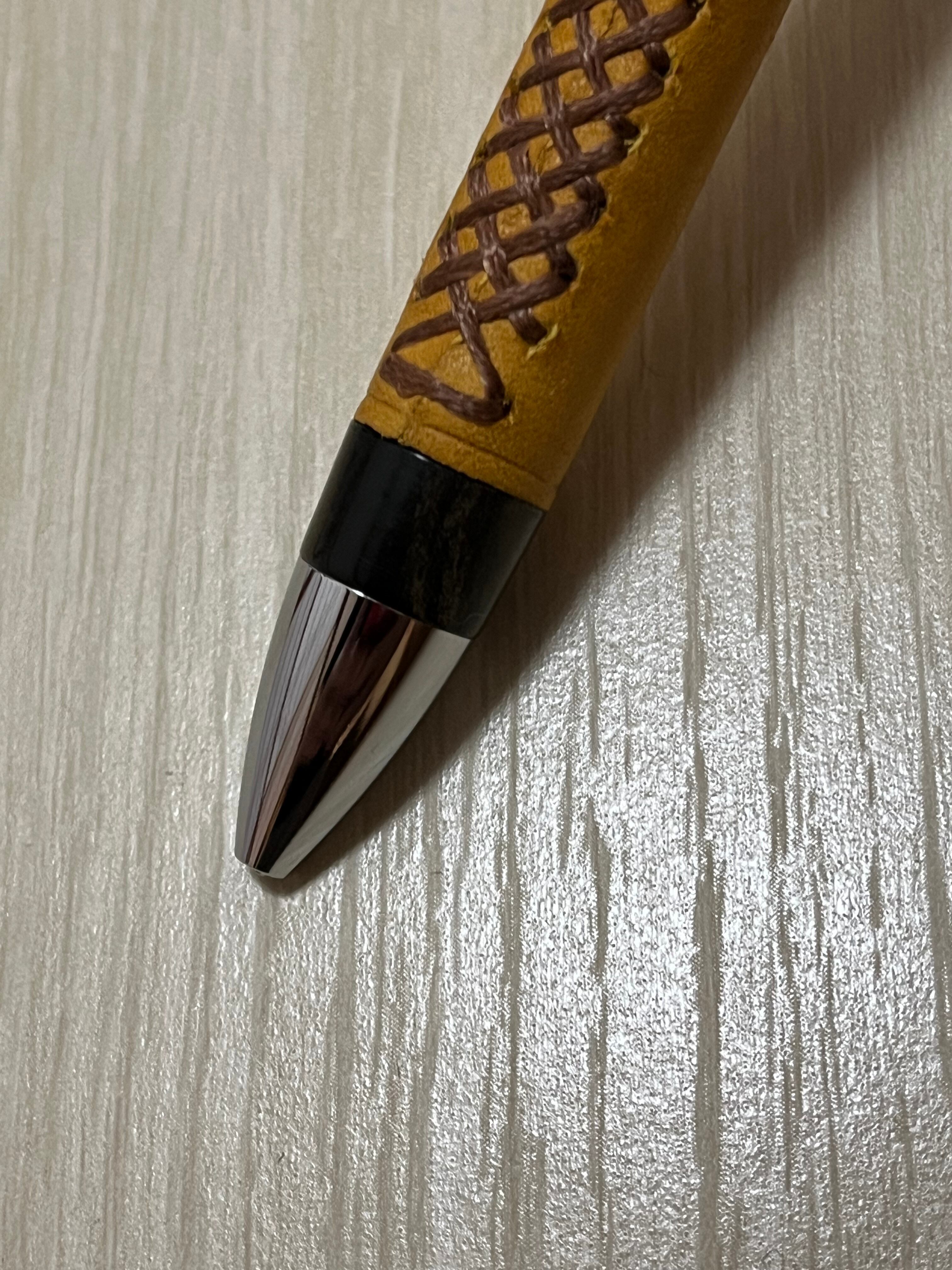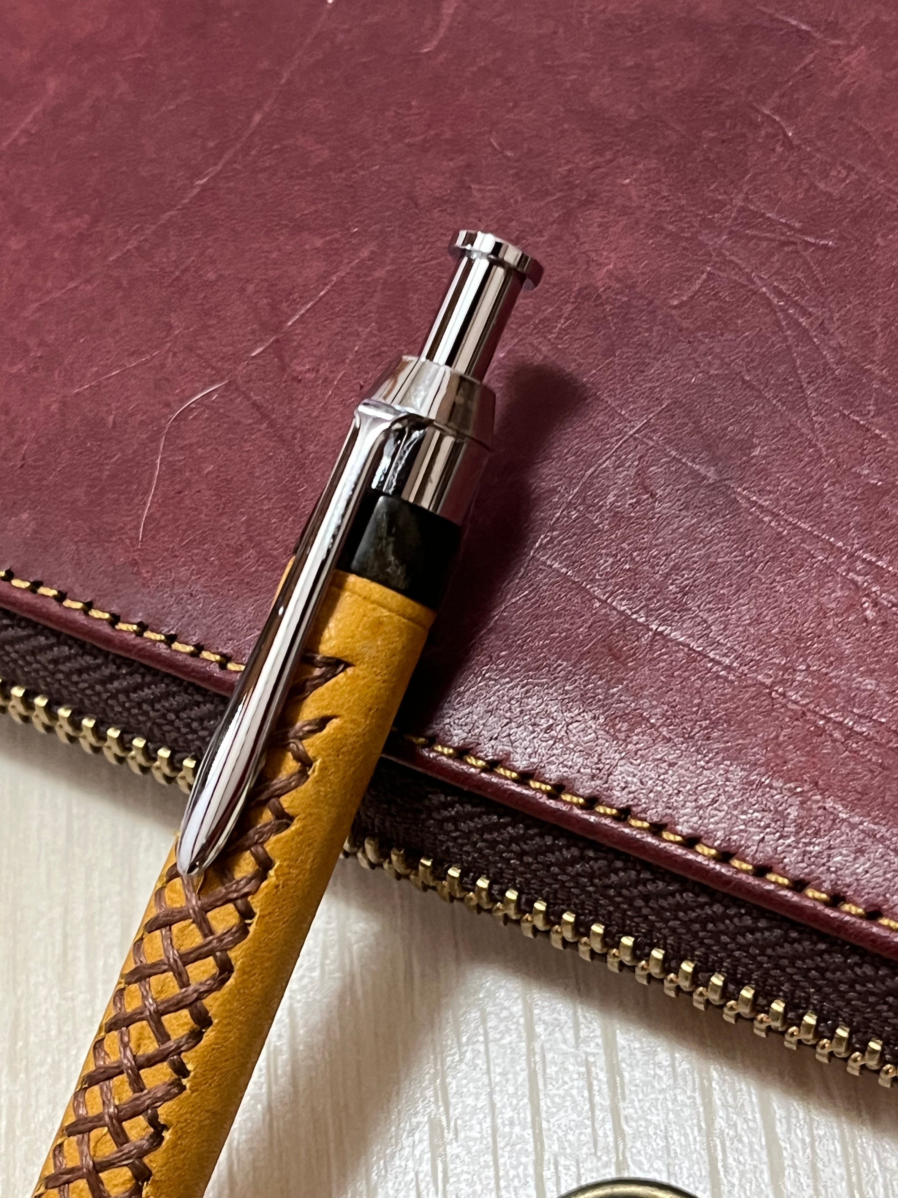 一般販売 蒼天革軸ペン イエロー×ブラウン×エボナイトベージュマーブル 三神シャープ1000