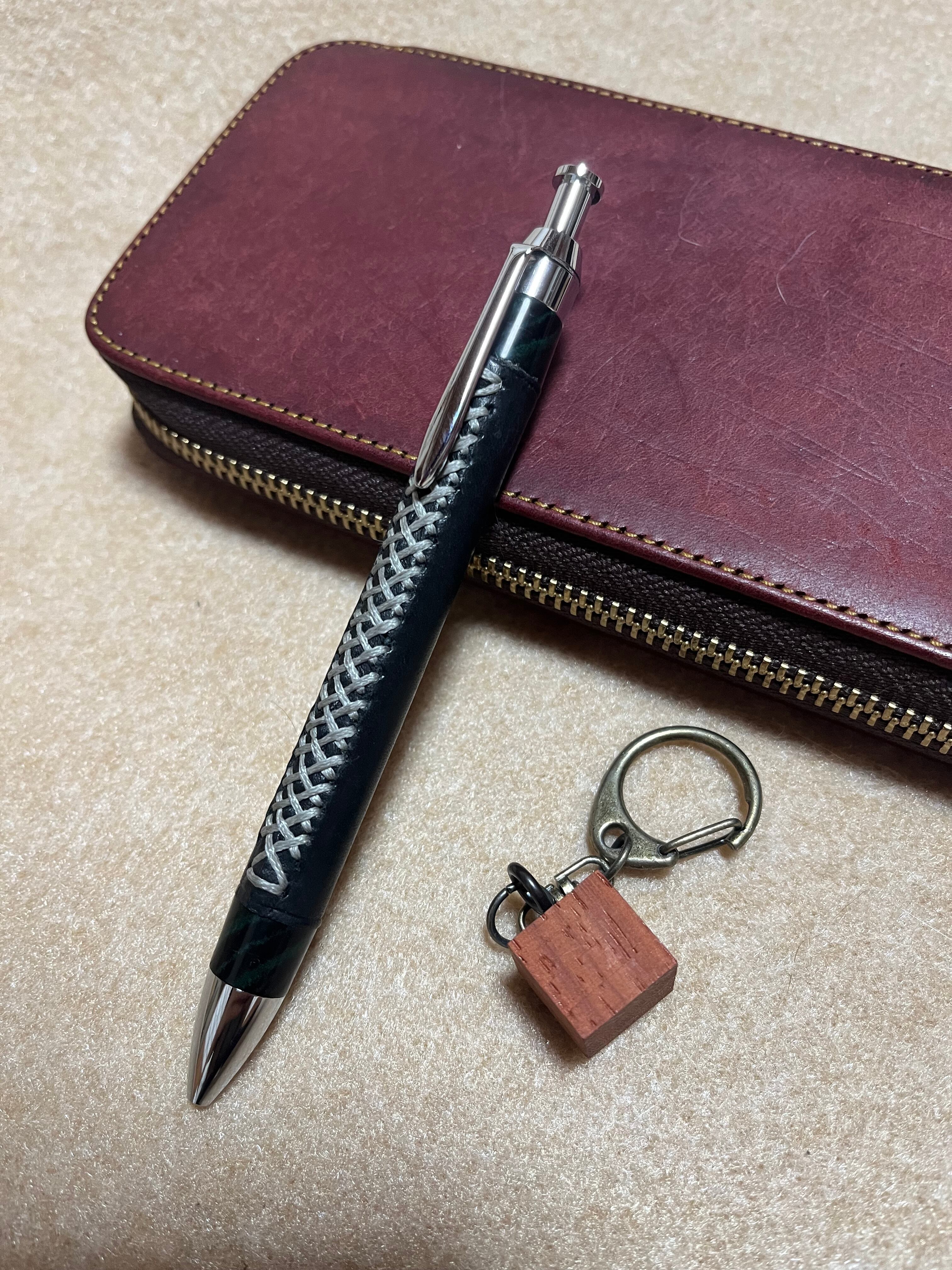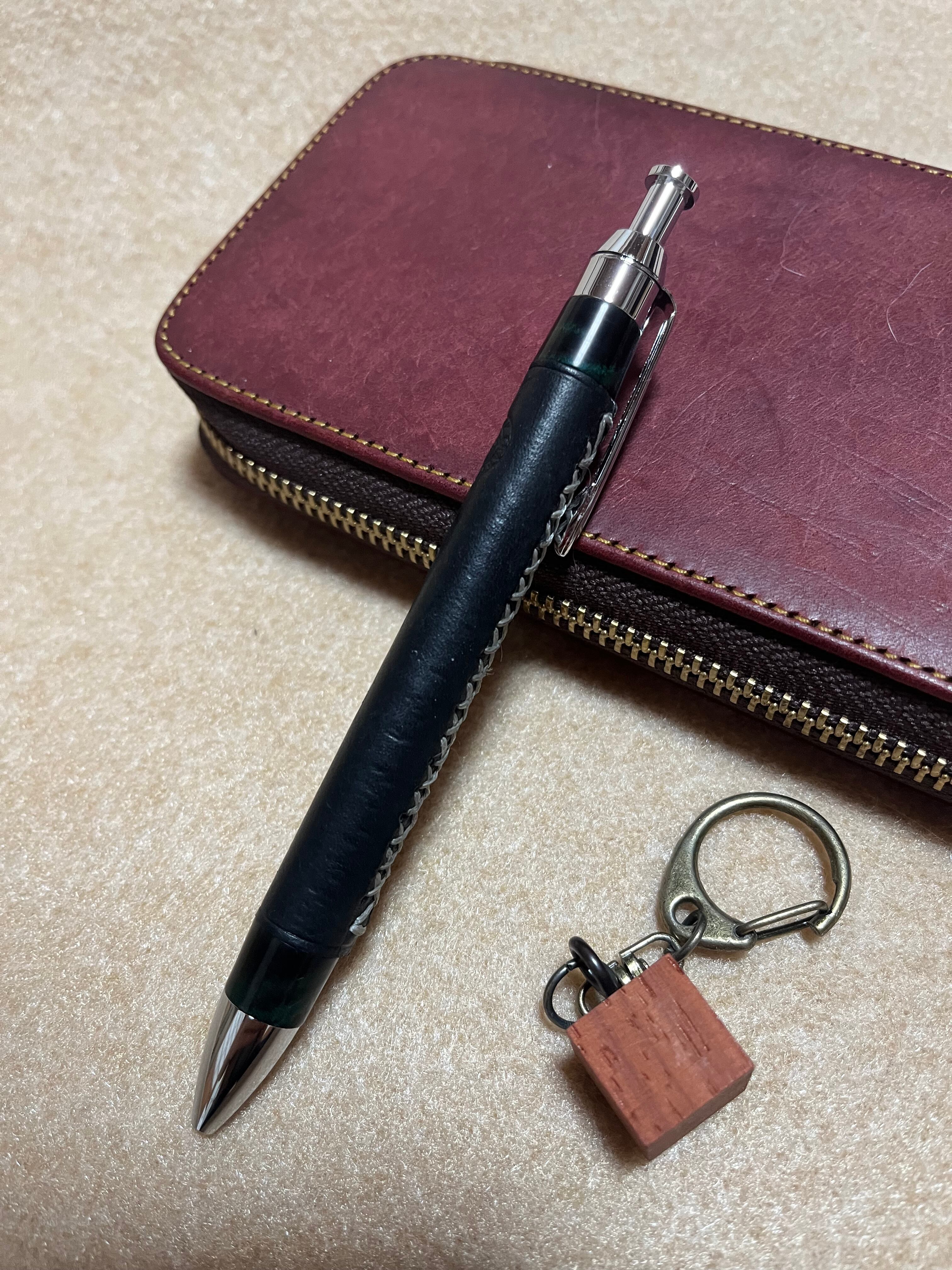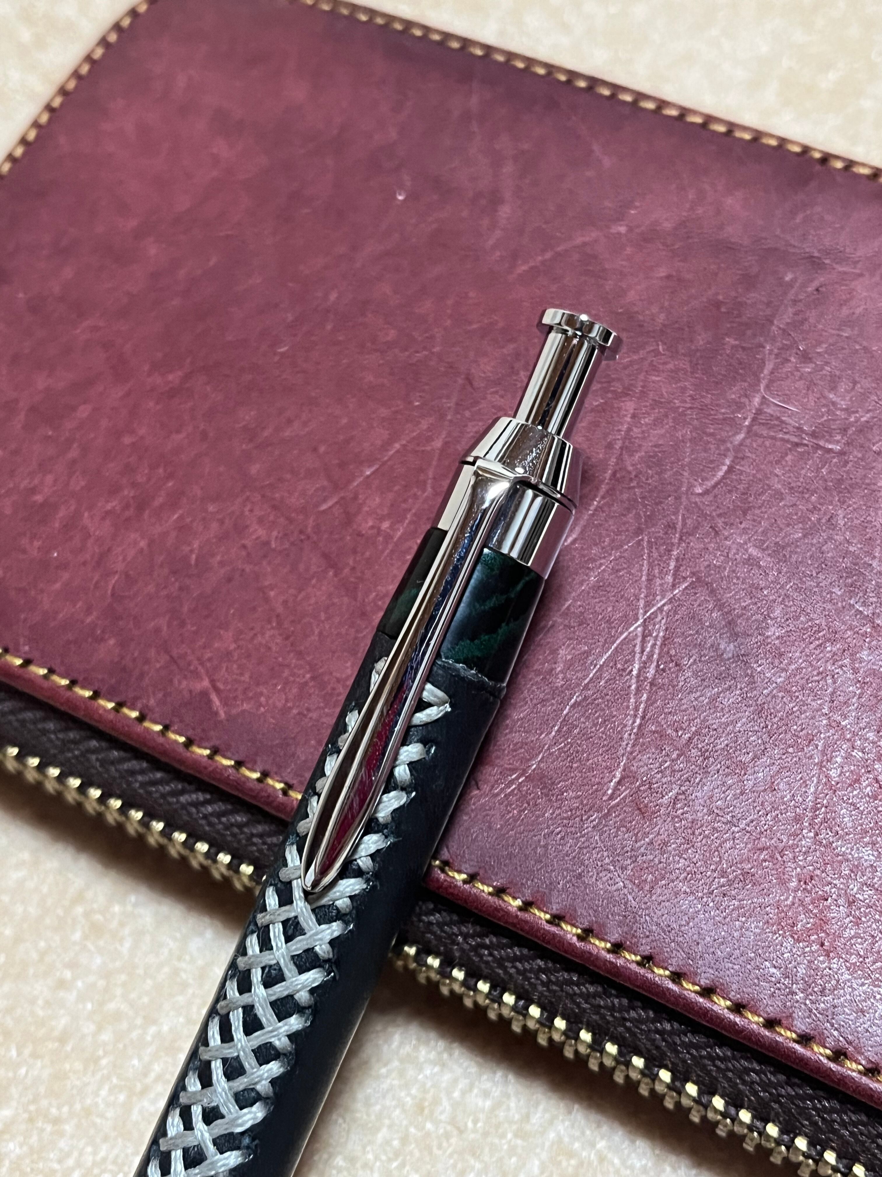 一般販売 蒼天革軸ペン マヤブラック×シルバーステッチ×エボナイトグリーンマーブル 三神シャープ1000 0.5mm