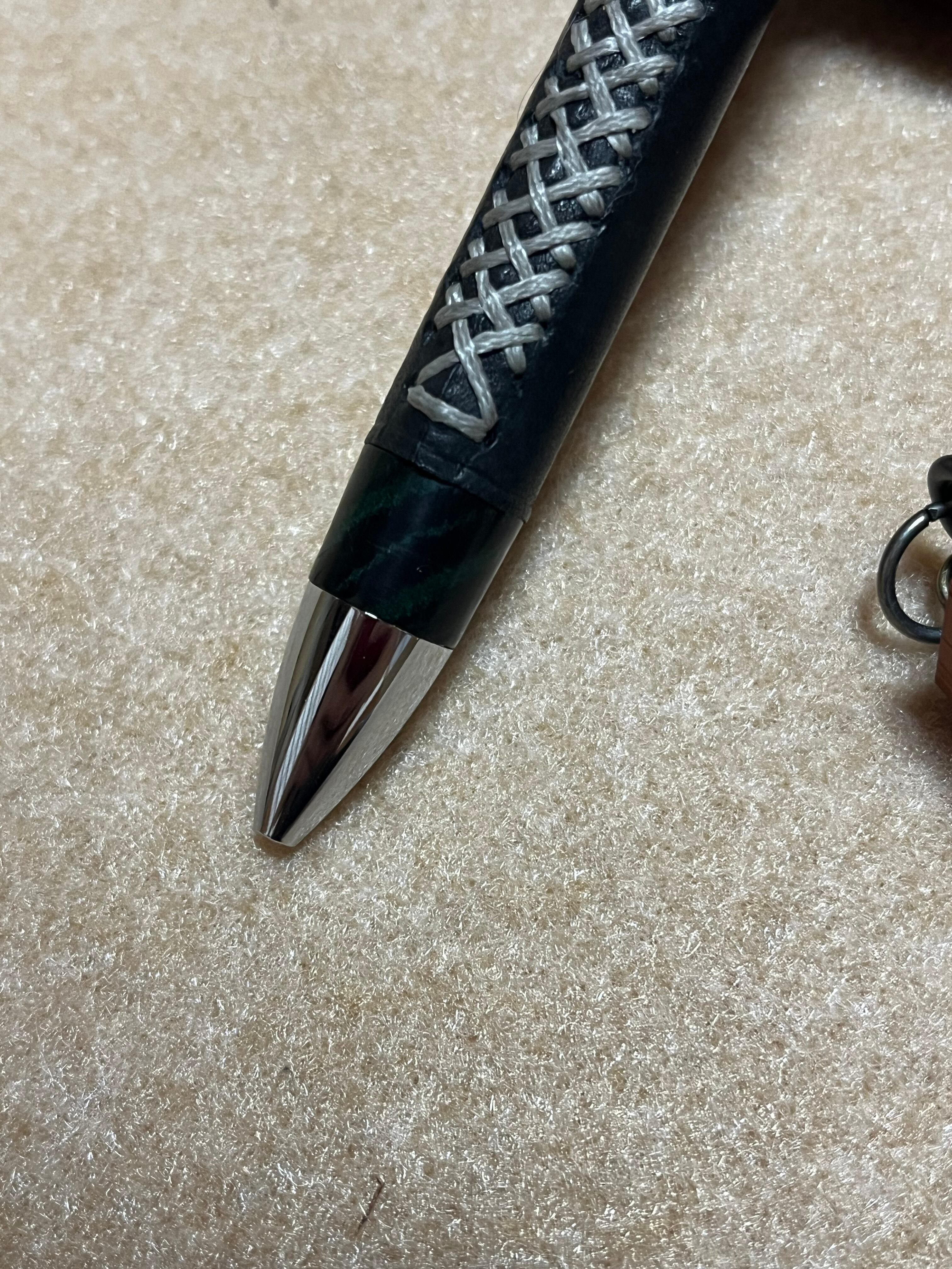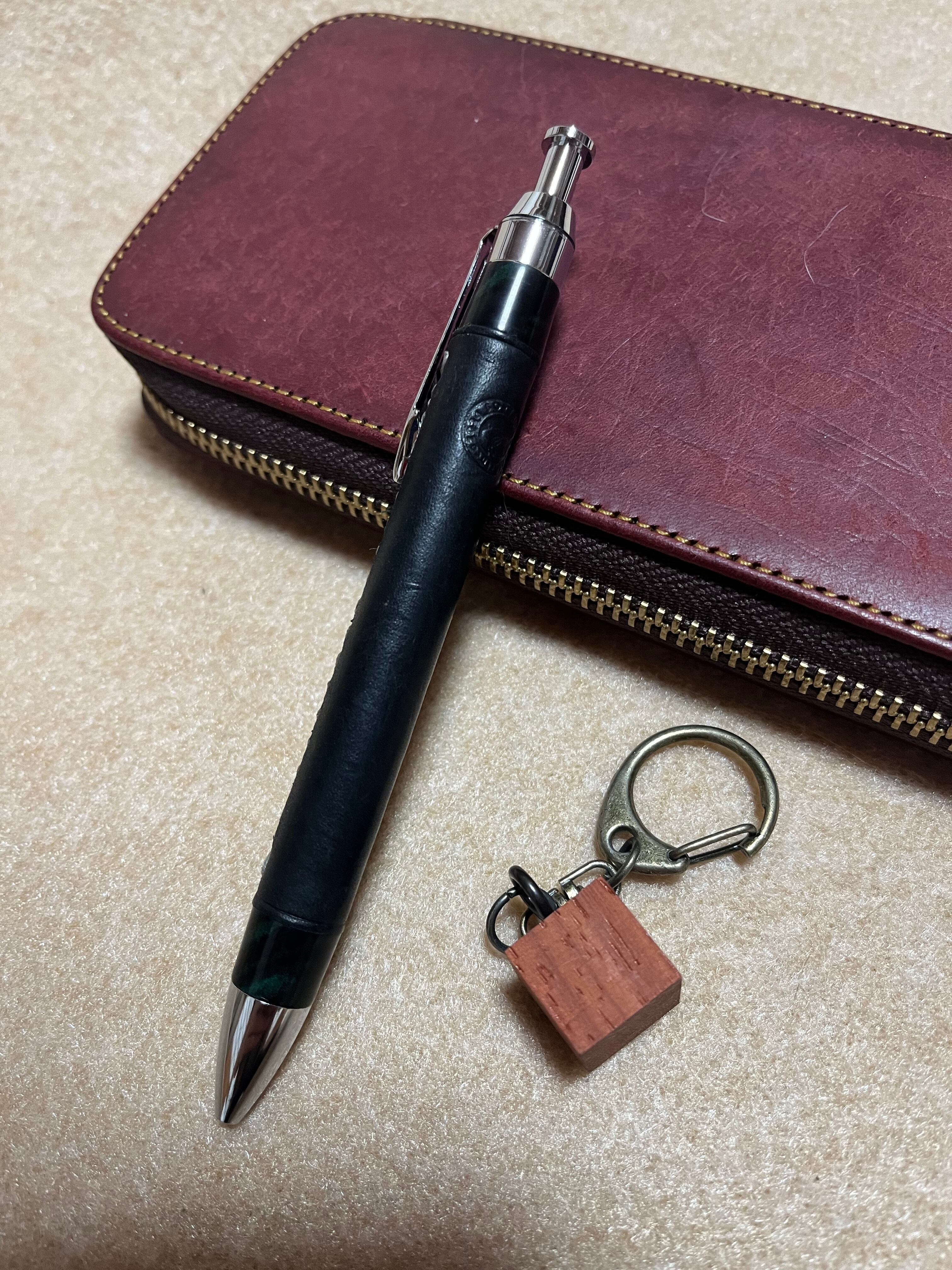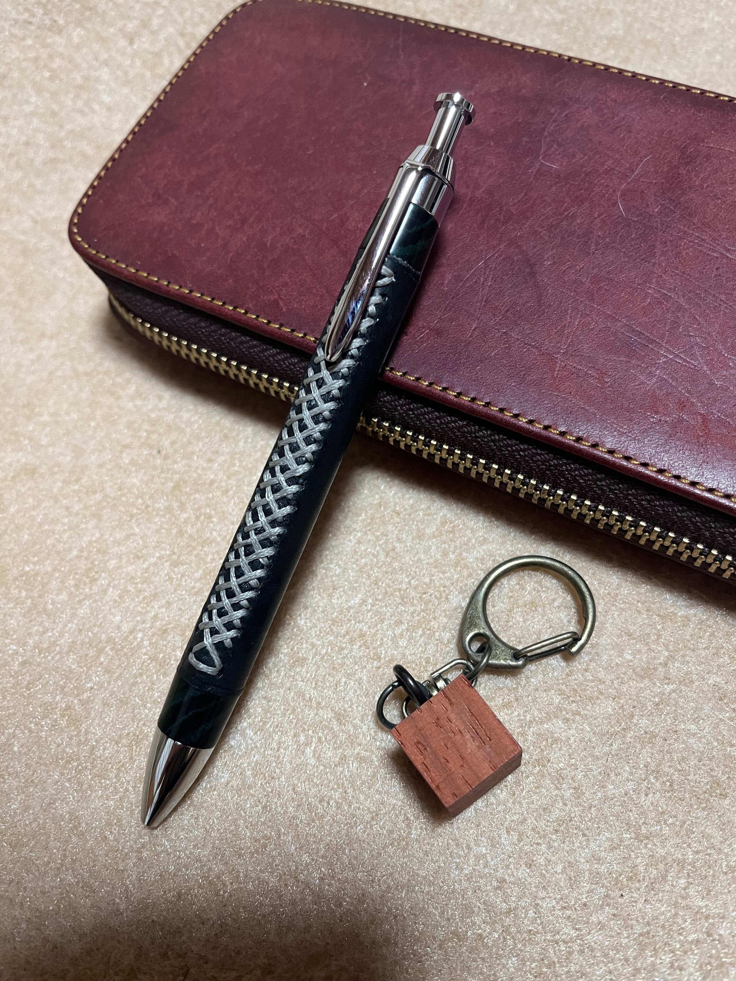 一般販売 蒼天革軸ペン マヤブラック×シルバーステッチ×エボナイトグリーンマーブル 三神シャープ1000 0.5mm